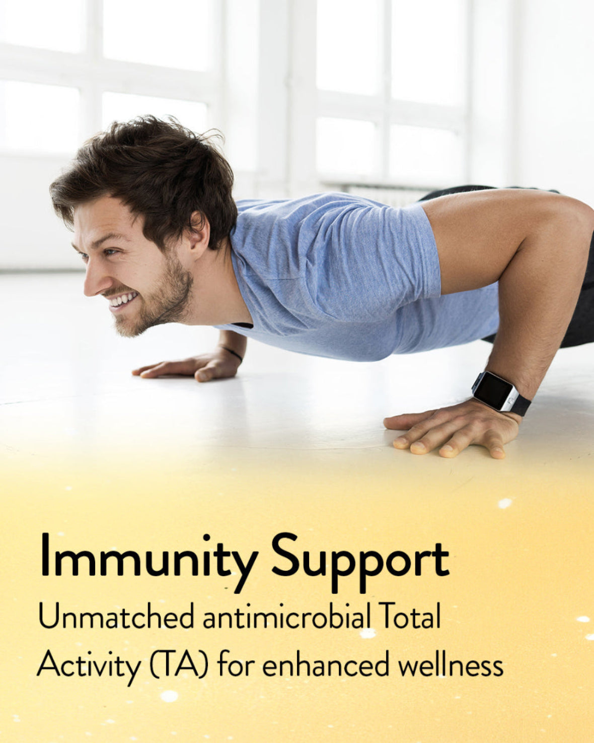 Total Activity (TA) is used to measure the antimicrobial strength of honey. The higher the TA the better to fight harmful microbes - bacteria, fungi, viruses.