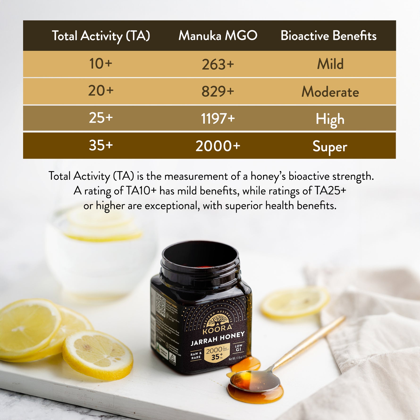 Jarrah Honey TA35+ (Equivalent to Antimicrobial Rating of MGO 2000+ in Manuka Honey)